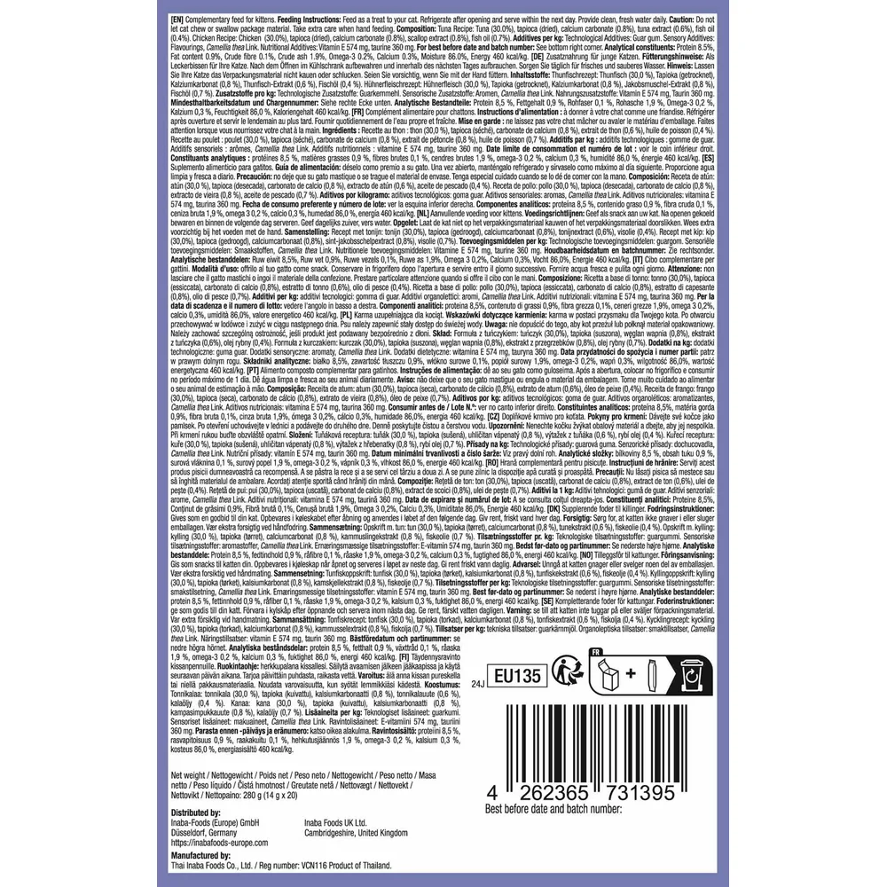 Varje Inaba-produkt är tillverkad med läckra ingredienser av hög kvalitet, inklusive gårdsuppfödd kyckling och/eller naturligt vildfångad tonfisk.